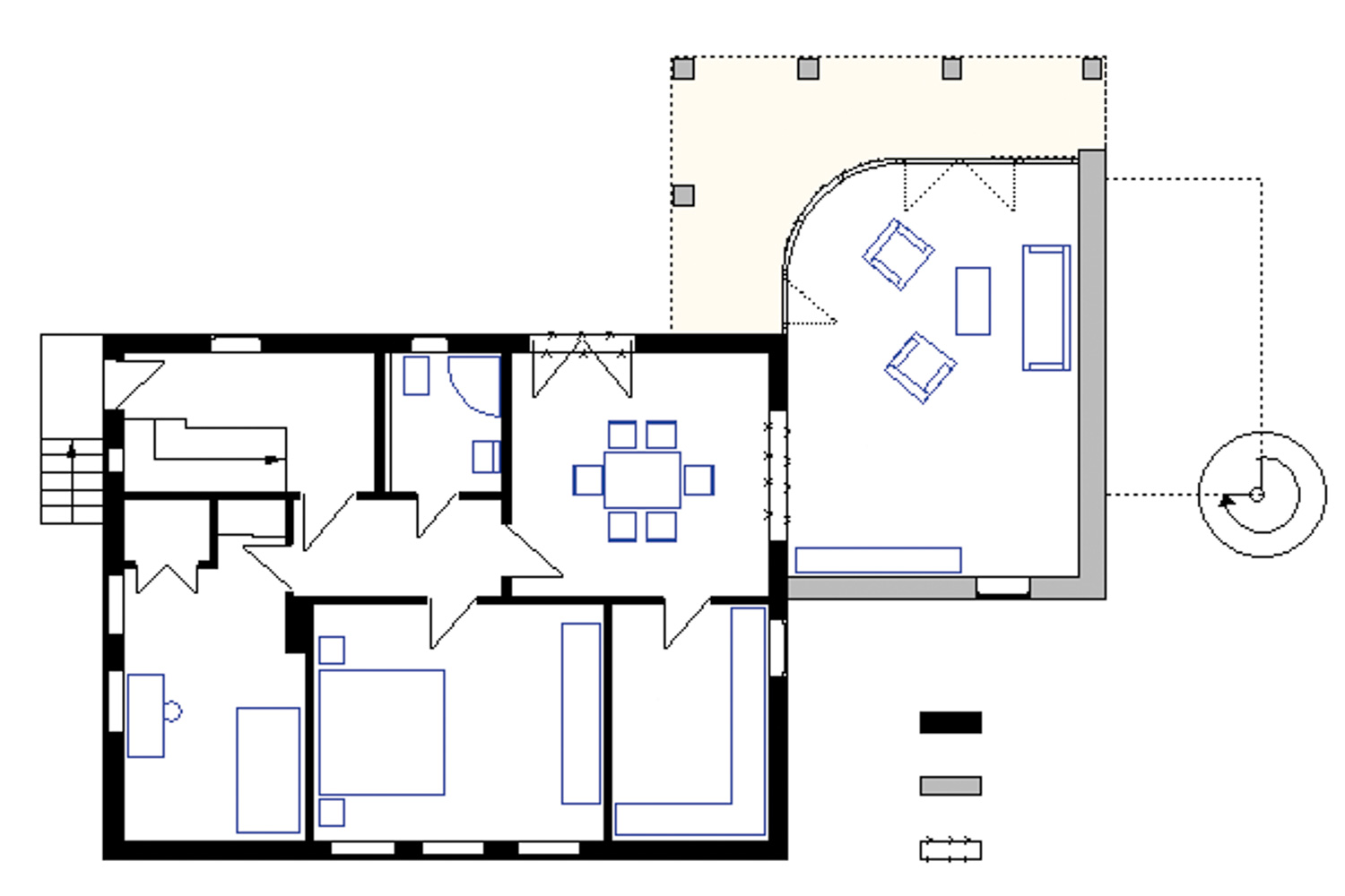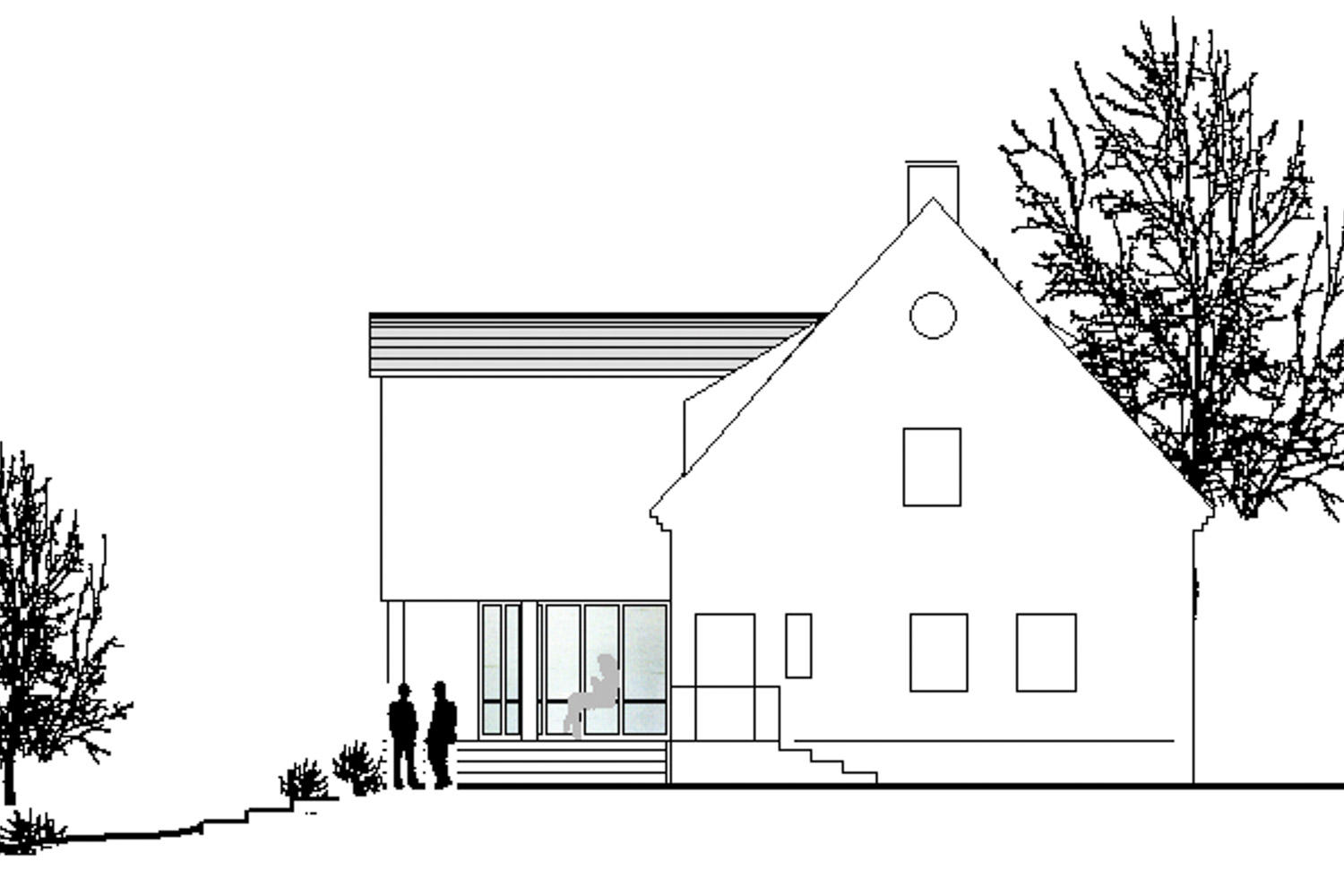 Erweiterung eines Einfamilienhauses zu einer Zweifamilienwohnung.